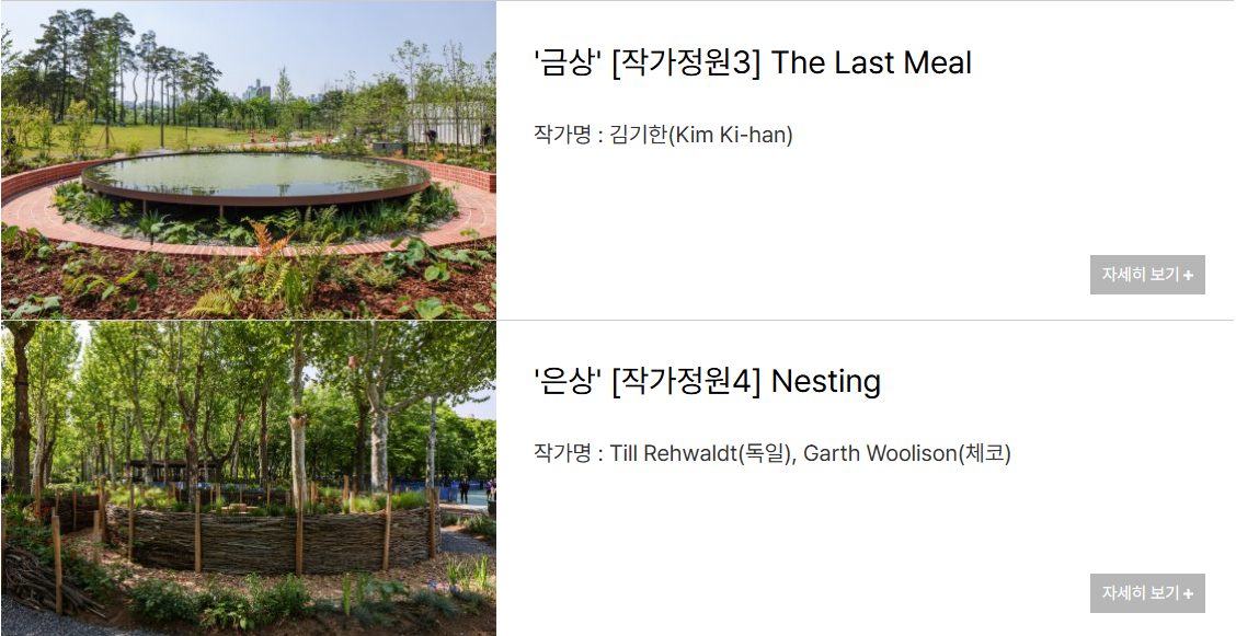 | 작가정원 | 국내외 작가 참여, 국제공모 선정작 5개소 + 초청작가 2개소 |